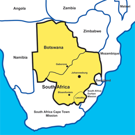 The South Africa Johannesburg Mission covers the northern area of South Africa and the neighboring countries of Lesotho and Botswana. Within the mission are six stakes: Bedfordview, Benoni, Johannesburg, Pretoria, Roodepoort and Soweto. As of 2004 there were 19,000 members in the mission. The mission covers an area almost twice the size of Texas. There are two other missions in South Africa: South Africa Cape Town and South Africa Durban. Until the Mozambique Maputo Mission was formed on January 1, 2005, Mozambique was also part of the South Africa Johannesburg Mission. |